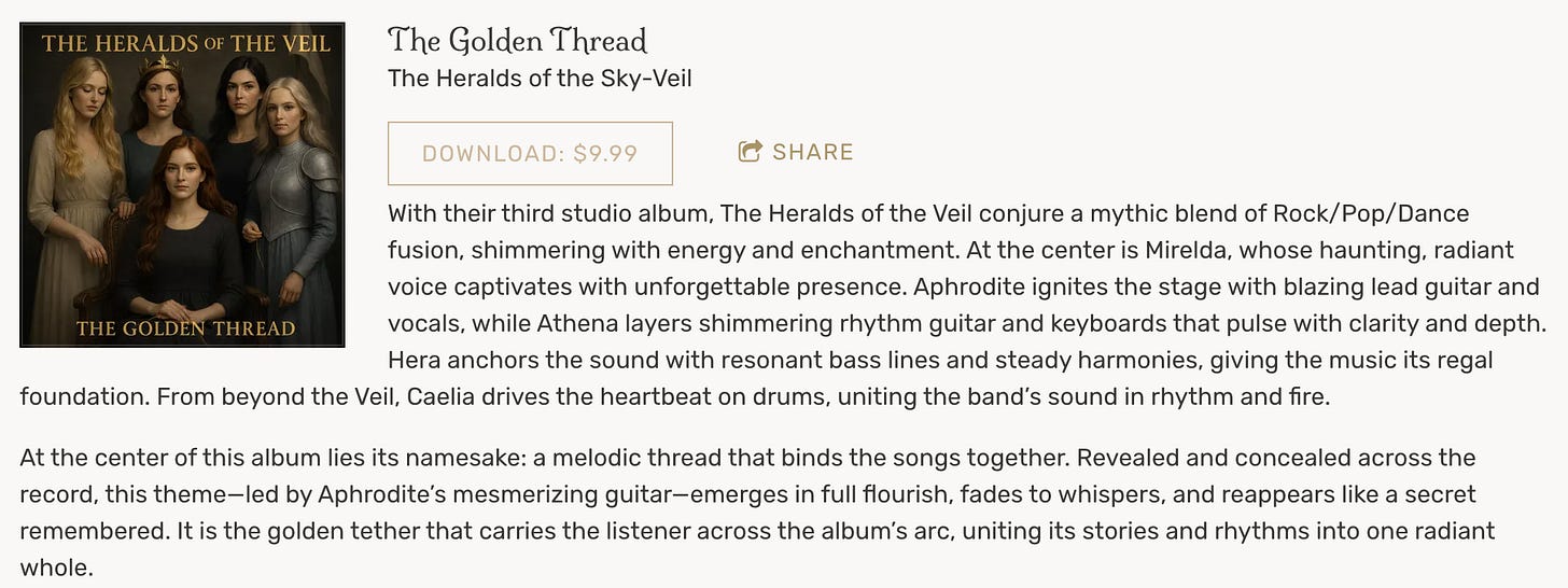 Download The Golden Thread, the new studio album by The Heralds of the Veil on the Sky-Veil music site, on Spotify, Apple Music, Youtube Music, and all your favorite streaming services.