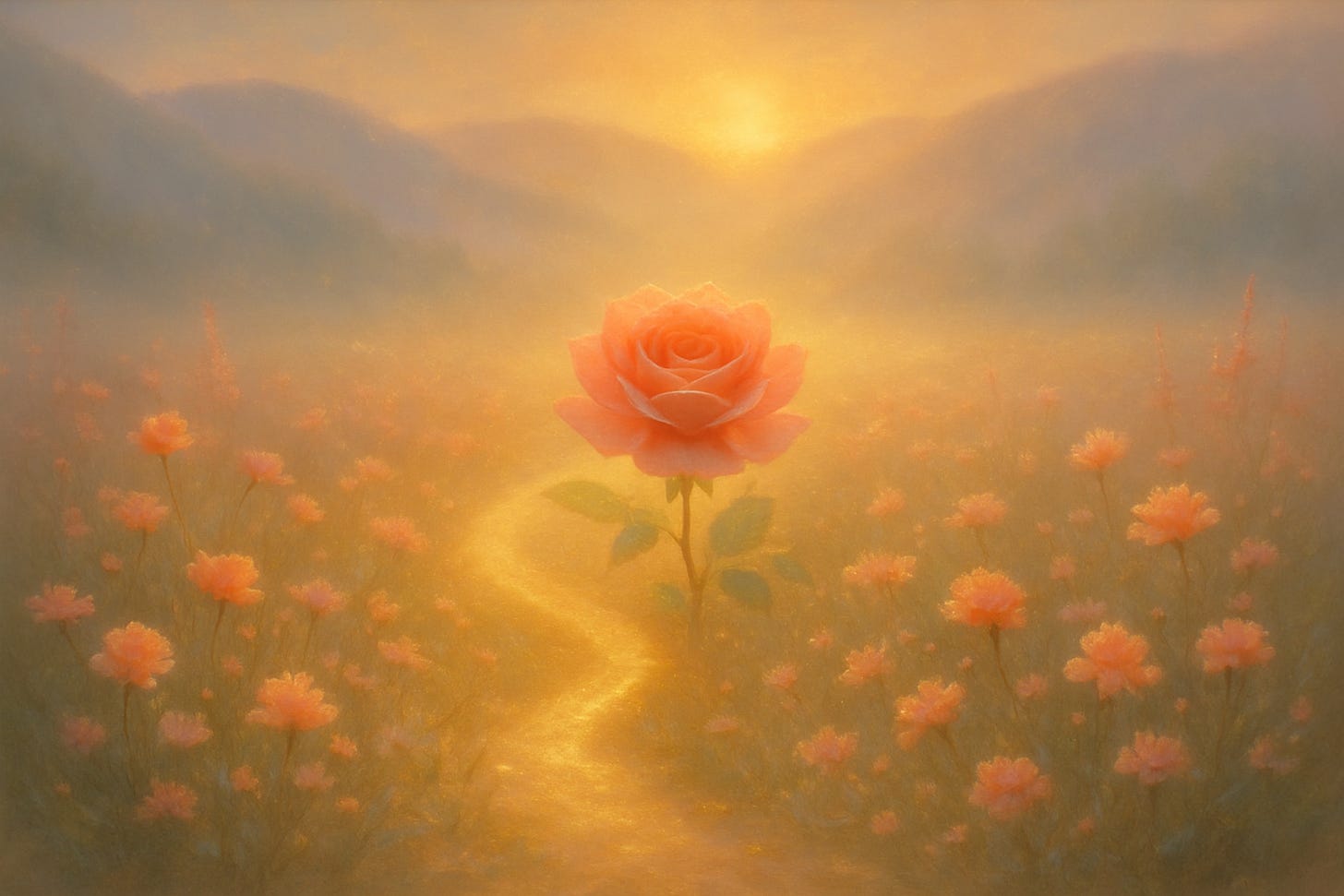 The Rose-Bearer and her radiant circle danced ahead with a new lightness—not of ease, but of fulfillment nearby. Their movements shimmered with purpose. My destiny was at hand.