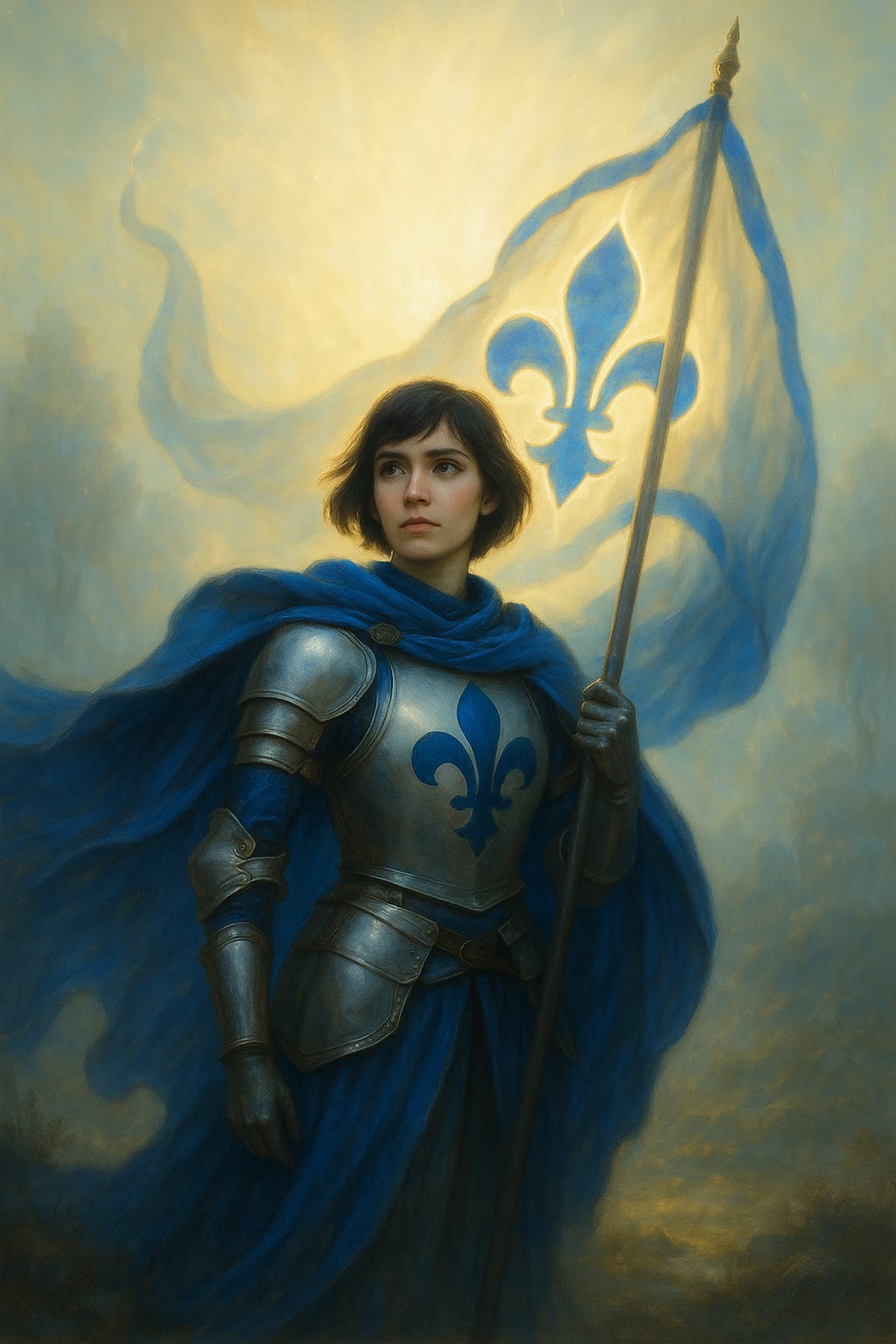 Joan of Arc, the Maid of Orleans, stands on the brink of history. At just seventeen-years-old years old, this extraordinary young woman commands the French Army, the youngest ever to hold such power.[1] With her devoted troops, she prepares to assault the English stronghold in Jargeau, determined to reclaim France from English occupation. Her ultimate goal? To pave the way for Charles VII's crowning in Reims as the legitimate King of France, all in obedience to the divine voices she hears from heaven. These voices, including that of St. Michael the Archangel, who cast Satan from heaven by God's power, have guided her since childhood.