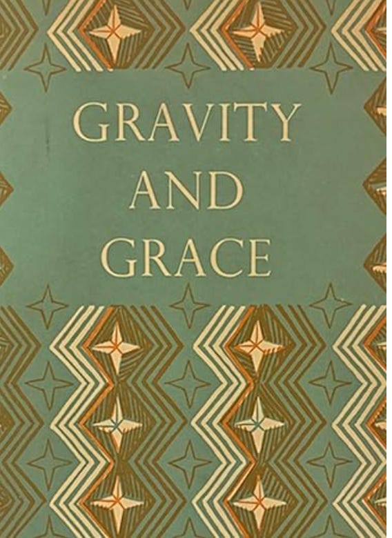 Simone Weil is enigmatic. I am interested to see if in her other writings, she has a system. In Gravity and Grace, she does not, but that might be because others compiled her notes posthumously. She is very much a mystic and philosopher. She pulls ideas from the "no-thing" of Heidegger's gleaming clearing. She is thrown and appropriated by the no-thing. In Gravity and Grace, the result is that we know not where her consciousness is traipsing.