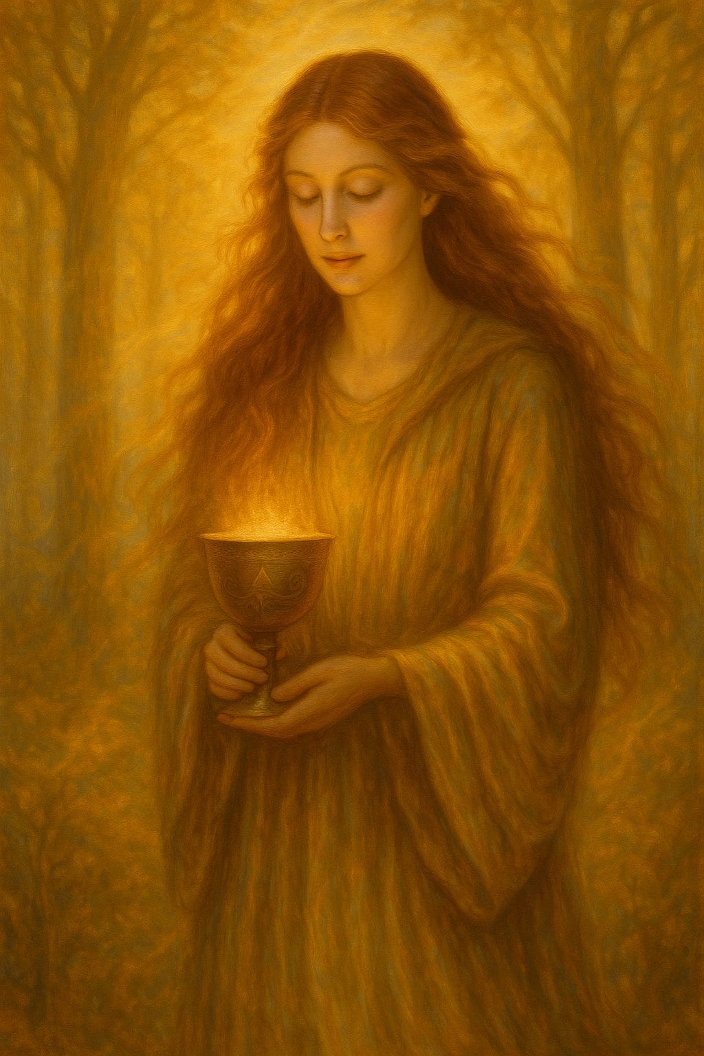 Mirelda stood as the living chalice of love—formed through repentance, carried by grace, hidden within the Deep Heart beneath the Queen Beyond the Veil.