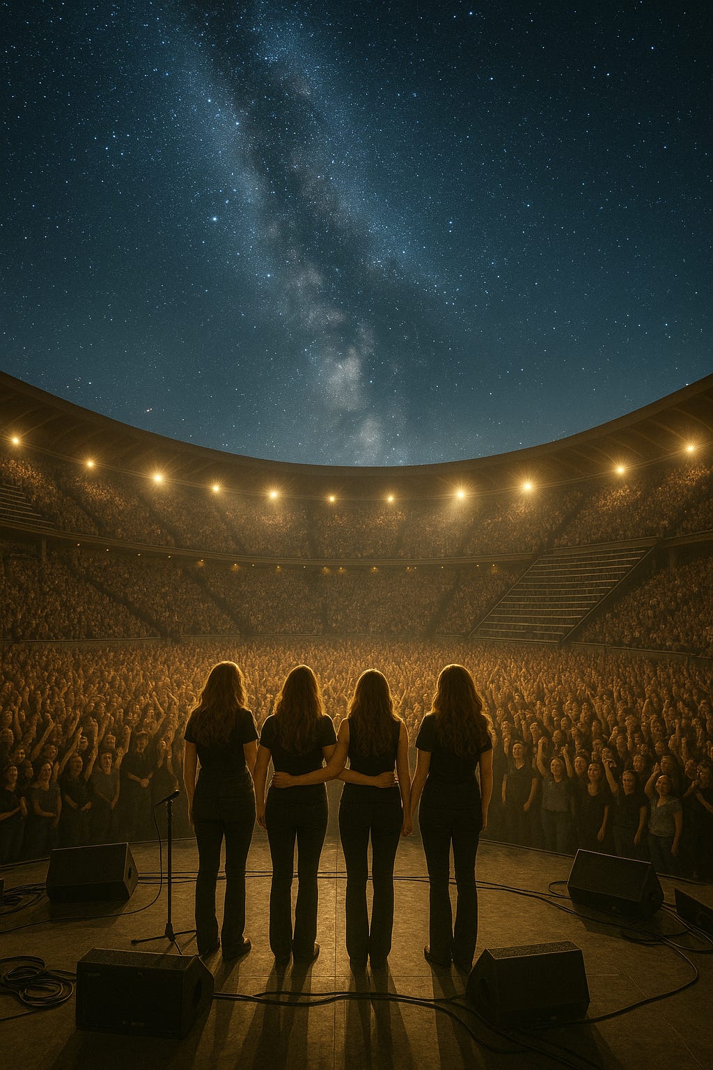 The Sky-Veil Amphitheater overflowed. Crowds pressed beyond the gates, the air thick with rose-scented dawn’s light and the pulse of anticipation. We added bleachers. We opened the hillside. Still, they came — pilgrims of sound, seekers of the golden thread.