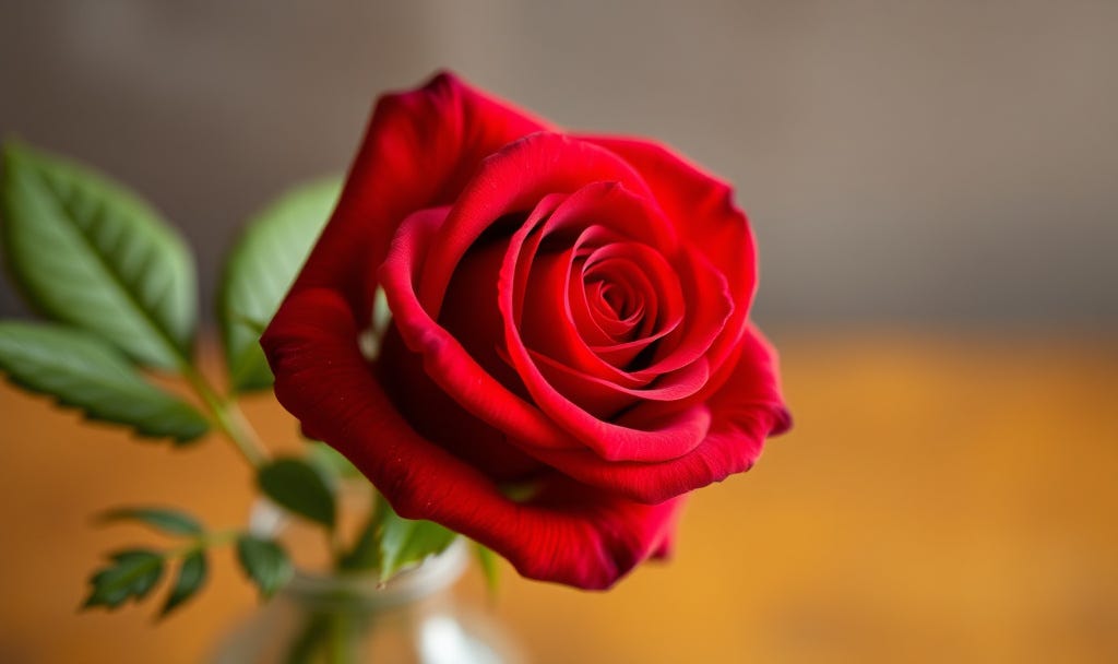 However, I was not turning to “drag main.” I was on a mission. Parked on the street, I looked both ways and crossed to the local flower store on foot. A few minutes later, I walked out with one beautiful red rose, the stem in a long glass vase filled with fresh water. I jumped back into my car and held the vase firmly in my left hand as I pulled back out onto Main, steering with my right.