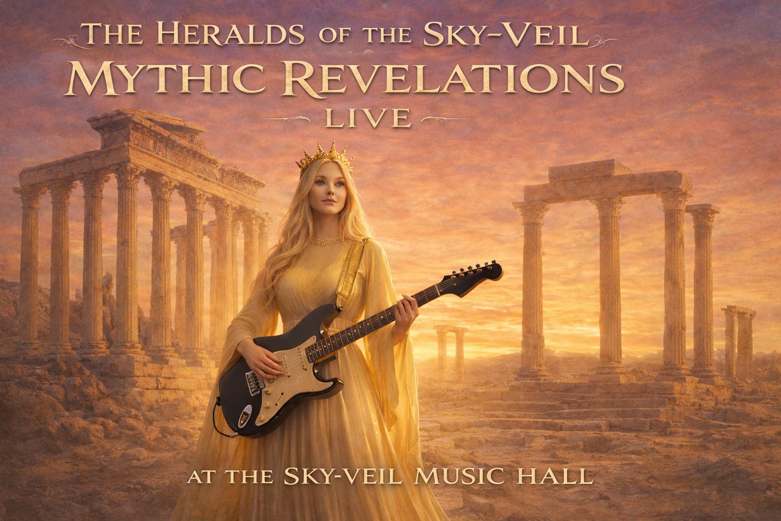 We are honored to present Mythic Revelations Live, a complete live concert by The Heralds of the Sky-Veil, recorded in full at the majestic Sky-Veil Music Hall before thousands of gathered pilgrims. The hall itself seemed to breathe with the music—stone, air, and silence drawn tight by thunder. What unfolded that night was not spectacle alone, but presence.
