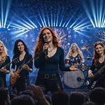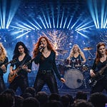 Hera and Caelia anchored the evening with low, patient thunder—bass and drums forming the ground beneath everything that rose. Aphrodite mesmerized the hall on lead guitar, her lines shimmering and cutting like beauty itself—wounding and healing in the same motion. Athena rose to new heights, unveiling innovative heavy metal riffs that felt forged rather than played, precise and daring, wisdom carried on distortion. And Mirelda—center stage, as ever—was not merely the voice of the music, but its movement: the place where all sound gathered, turned, and became meaning.
