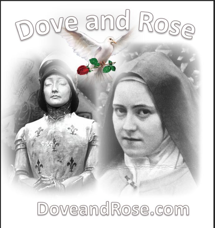 The Dove and Rose is revealed through the heart of St. Joan of Arc as her heart is interpreted by St. Thérèse. It is a supernatural phenomenon contextualized and therefore manifested in its true givenness through the revelatory lens of Catholicism. The Dove and Rose is a phenomenological explanation of the supernatural experience of the combined hearts of St. Joan and St. Thérèse.