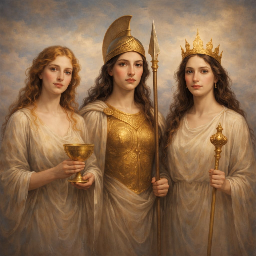 Aphrodite’s Dance - a mythic quartet bearing the entire story of the Sky-Veil through a mystical journey with the heralds of Being-ness—Aphrodite, Athena, and Hera—across the liminal fields and meadows to the Highlands of Majesty.