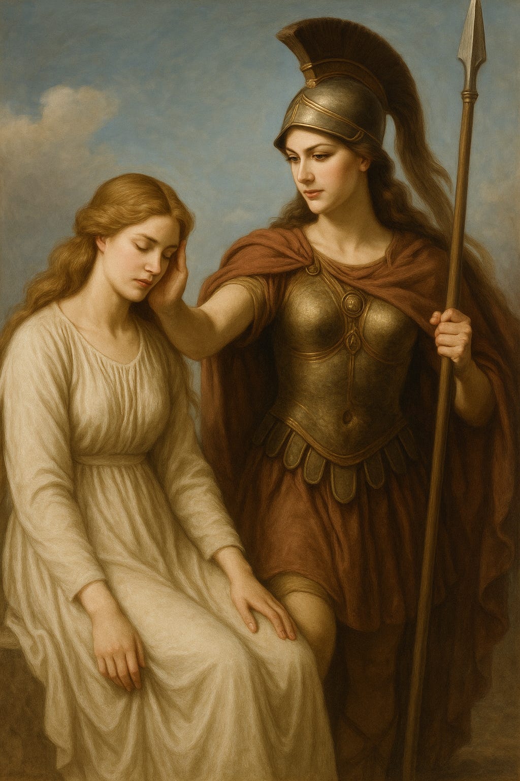 If you remember your Homer, you know why things got complicated. Hera and Athena sided with the Achaeans (emerging after Troy and the collapse of the Bronze Age as “Greeks”); Aphrodite with the Trojans. Even now, Hera and Athena bristle at not receiving the golden apple, a prize bequeathed to the most beautiful goddess as determined by Paris, while Aphrodite—ever radiant and loyal—defended her son (sort of - listen to the Whisper), the Trojan prince Aeneas. At one point in the Iliad, Athena even punched Aphrodite to the ground.