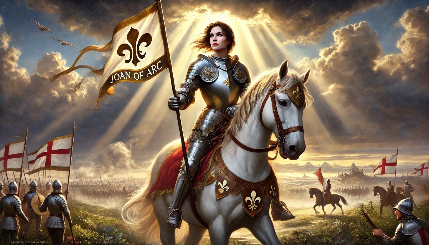 Across the cresting hills this dawn Finds dreamy landscapes veiled by mist Our Lady points through fields beyond Amidst their haze a shadow sits As sunlight breaks the shades turn true The figure, clear, on horseback, too Our Lady smiles, it’s Joan of Arc! A saint to guide me to her heart In Mary’s heart, Christ’s Kingdom’s found The Maid knows well the pathway stark By fire in glory she was crowned That Kingdom loves God’s Joan of Arc! This saintly Maid inspires my soul! I follow Joan through fire or cold Toward Christ’s Kingdom in Mary’s heart Toward Christ’s Kingdom in Mary’s heart
