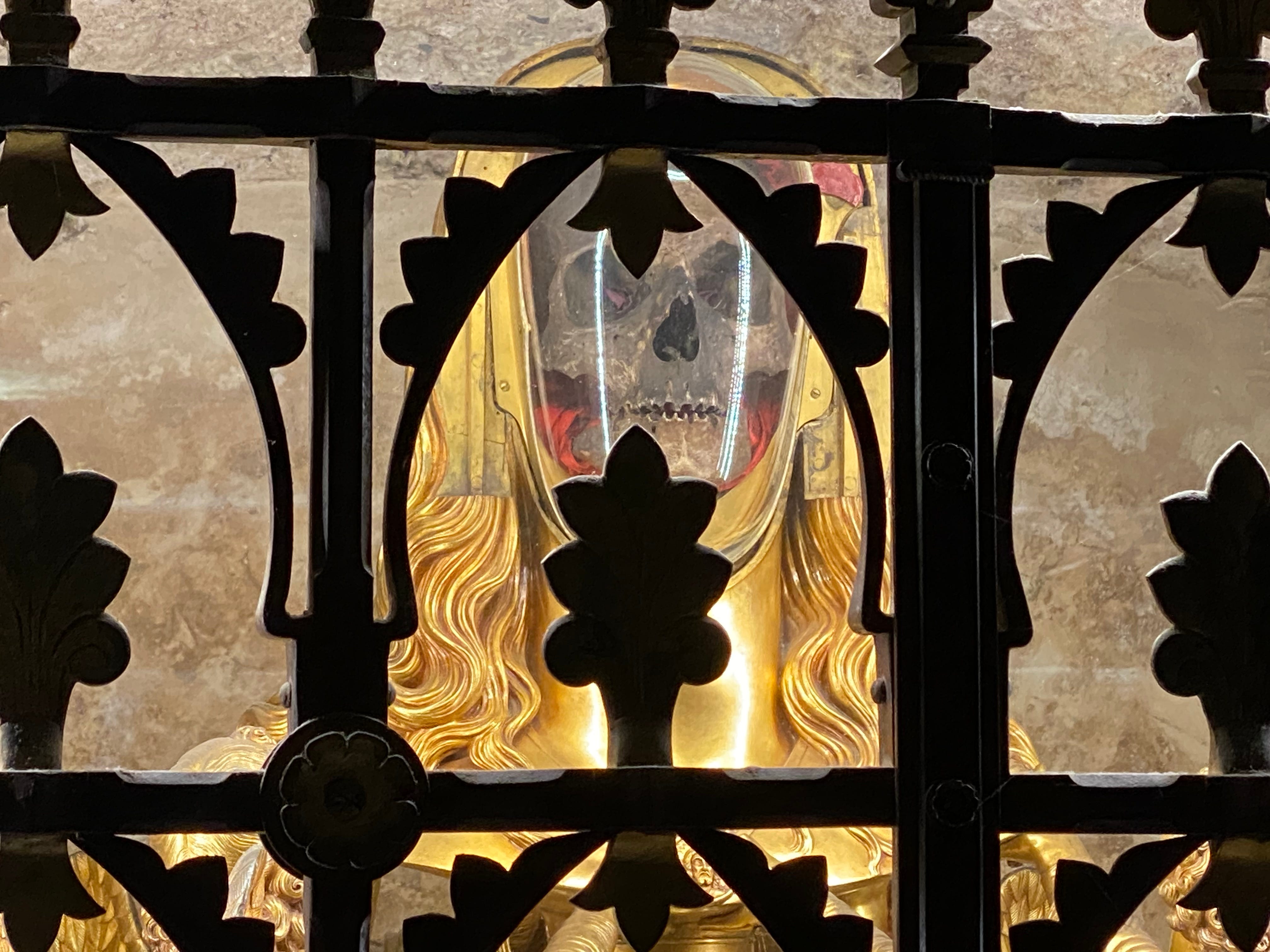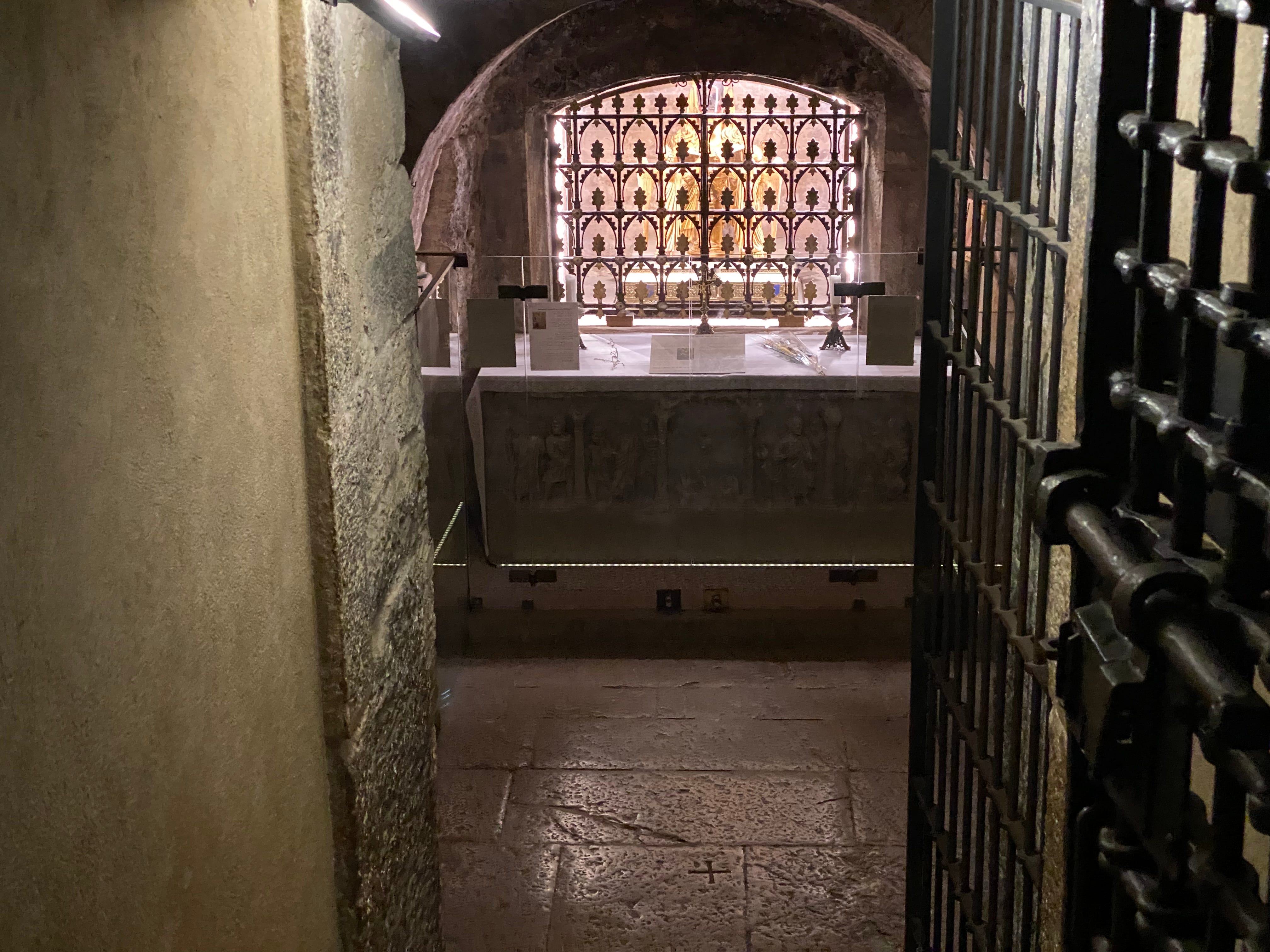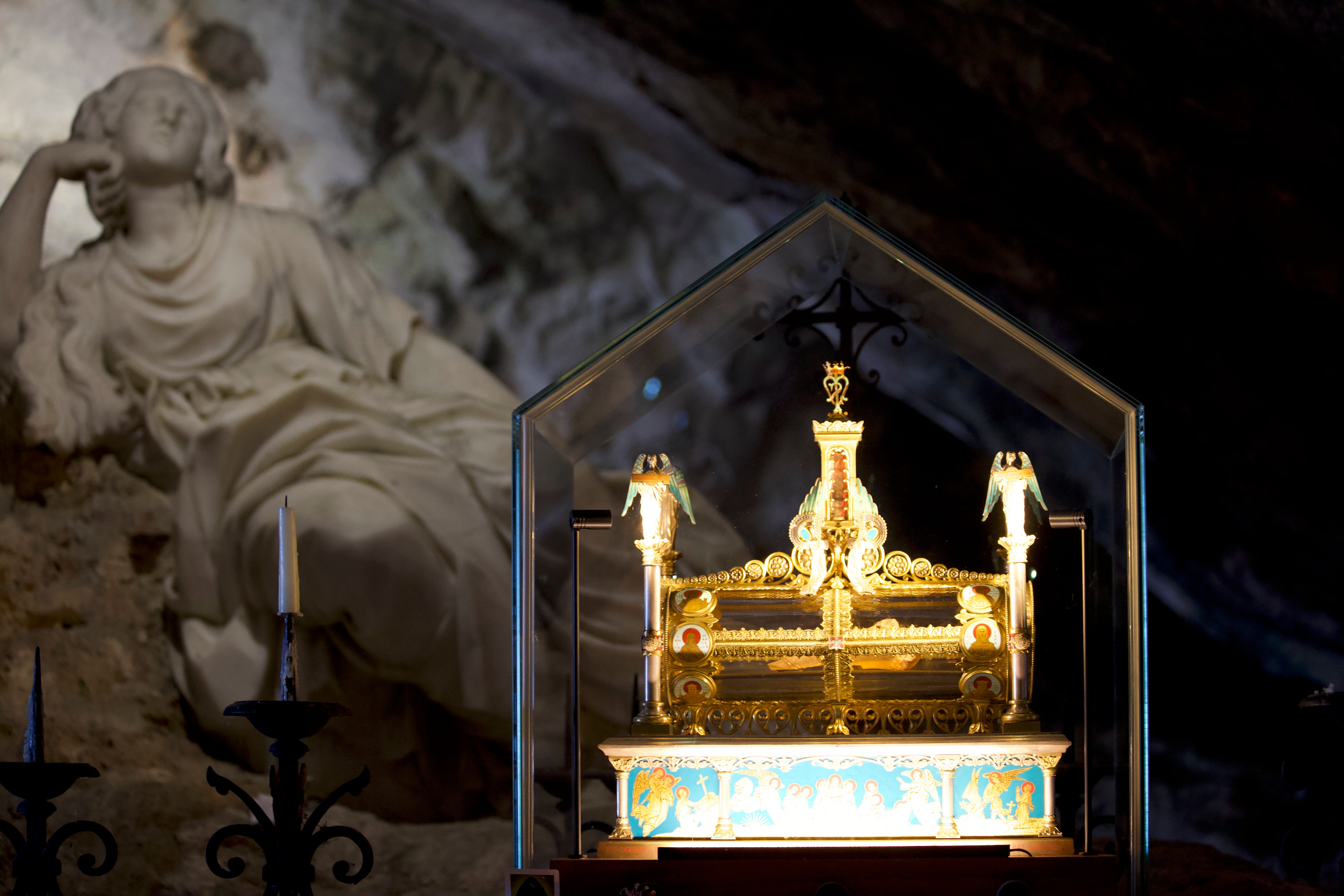 The pilgrim descends from the nave into “the third tomb of Christendom” to venerate Magdalene’s relics. Here rests she who: