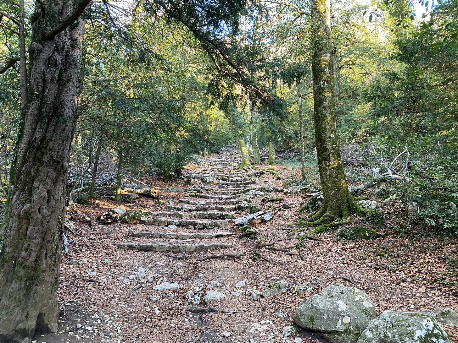Thirty minutes south of the Basilica, the pilgrim finds the holy grotto in the massif of Sainte-Baume—a place where heaven and earth kiss. Near its base lies a small hostellerie for pilgrims, its chapel adorned with four magnificent paintings that trace Magdalene’s transformation: from sinner to herald, from disciple to saint, from mortal sorrow to eternal joy.