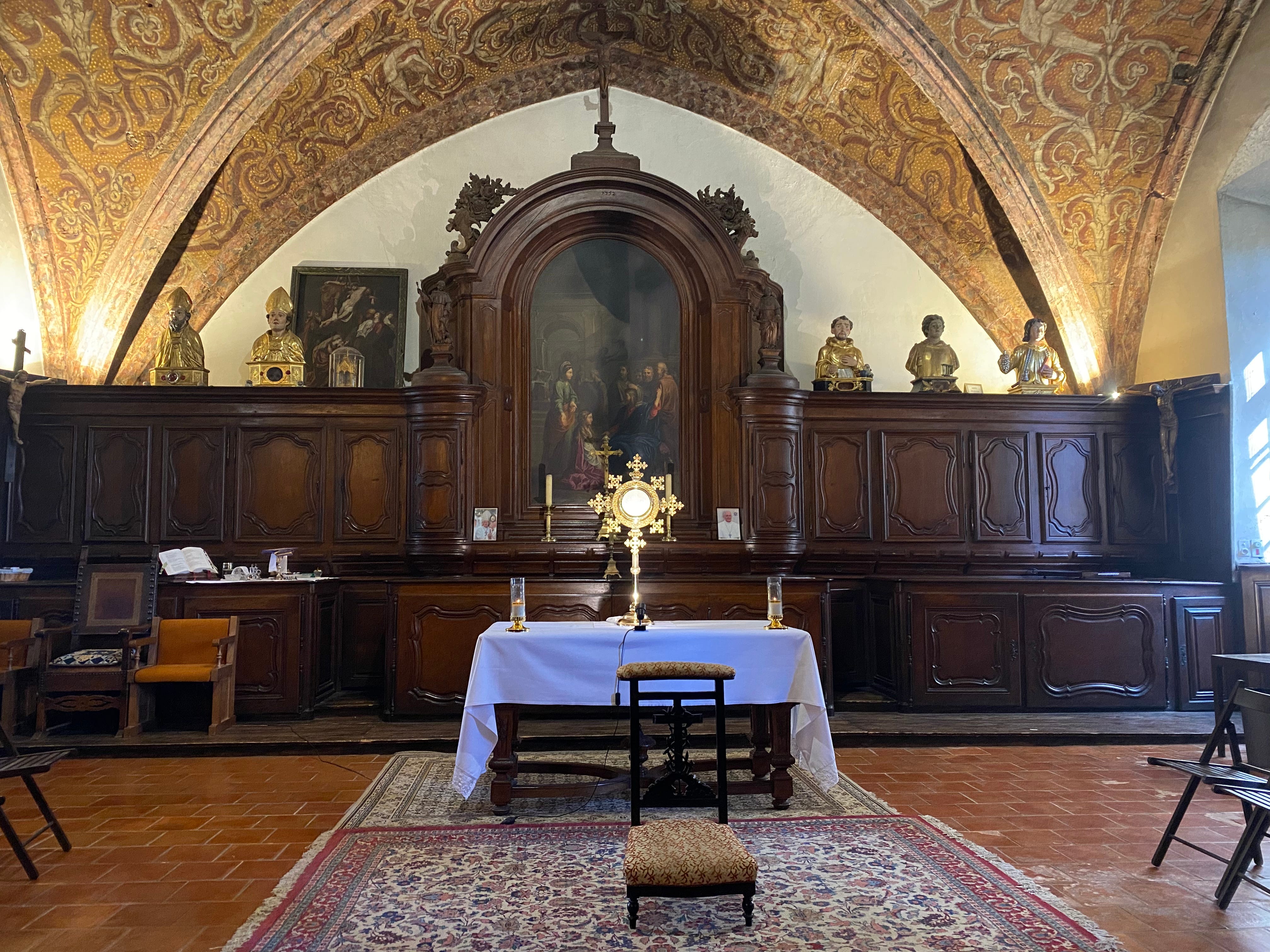 To the right of the entry stands the Chapel of Joan of Arc and Thérèse, bearing witness to Magdalene’s assumption to the summit of the massif, where angels once bore her seven times a day to receive the Eucharist.