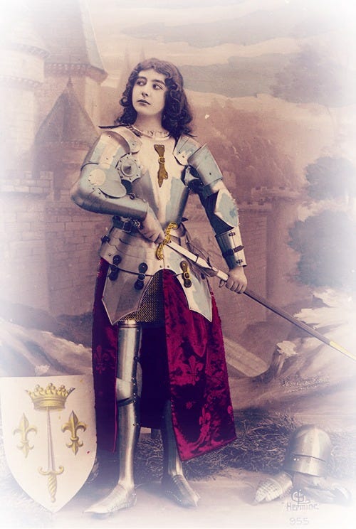 Through Joan’s individual person, we advance in constructing the Kingdom. Want to see as she sees. We sense that this is no mere subjective construct or imaginary. From individual to concrete intuition and ideation and generalization, we know what is real in the Kingdom of God. Our personal experience, grounded in the life of St. Joan of Arc, draws us upward within the boundaries of the Trail of the Dogmatic Creed to the objectively real phenomenon. St. Joan and St. Thérèse at our side lead us to their Kingdom. Joan has “bested” us.