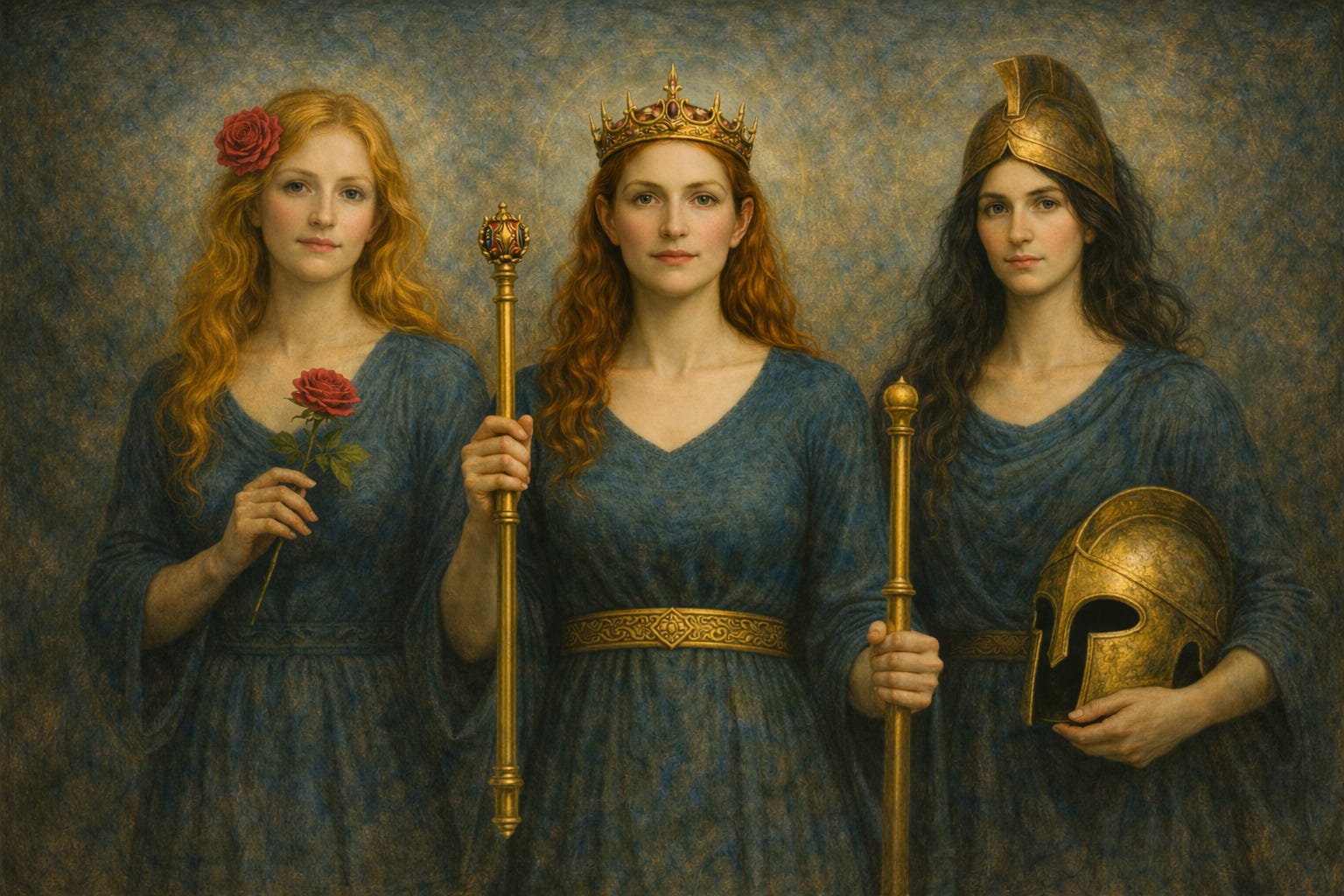 They are not three random echoes of ancient myth. They are the triune heralds of the Sky-Veil, preparing wanderers for the One who fulfills every longing.